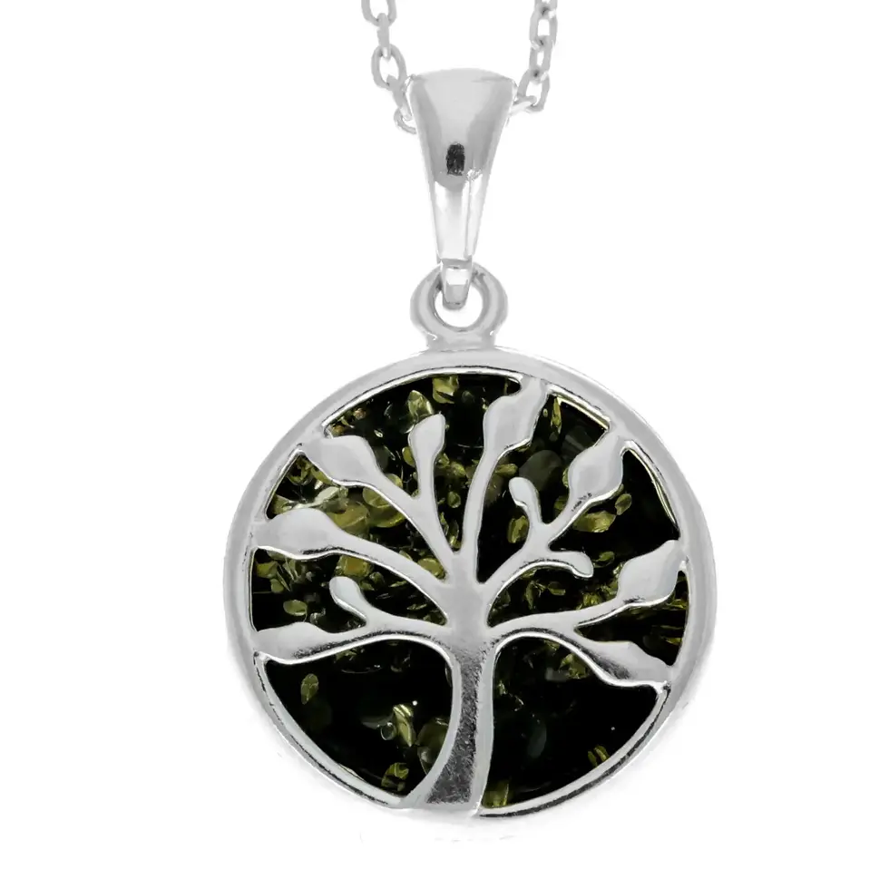 925 Sterling Silver & Green Baltic Amber Tree of Life Pendant